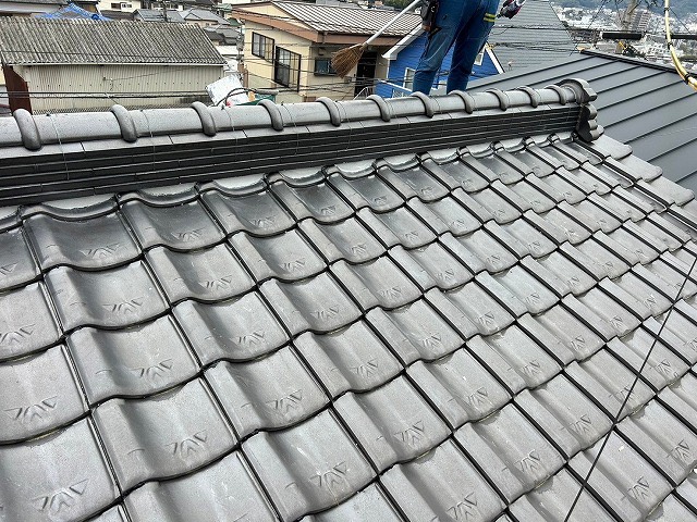 こんにちは!街の屋根やさん長崎店の井上です!本日は、大村市にて下屋根の漆喰が割れてきているとの事で調査を行った様子をご紹介いたしま(^^)屋根全体は丁寧に維持管理されており、以前の雨漏り時には大屋根のルーフィングを張り替え済みです。そのため大屋根部分の防水性は保たれていますが、今…