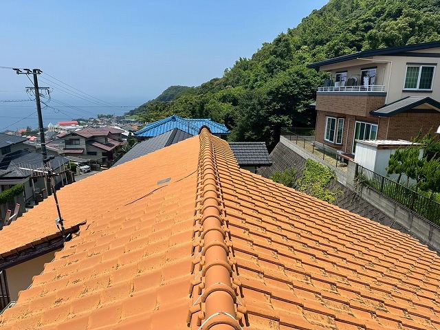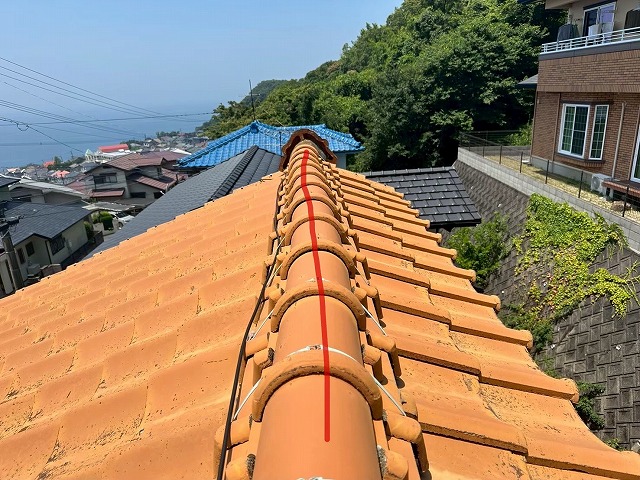 長崎市 戸建て住宅でセメント瓦屋根の棟歪みと塗装状態を専門業者が無料点検!