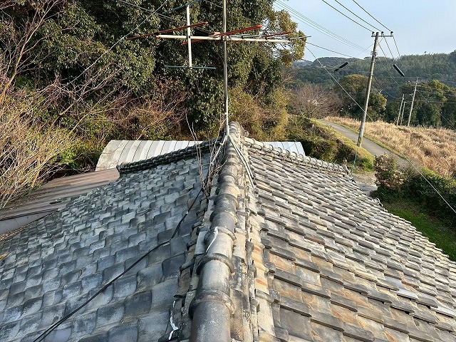 大村市で築75年の土葺き瓦屋根で雨漏り発生。陶器瓦スーパートライでの葺き替えをご提案