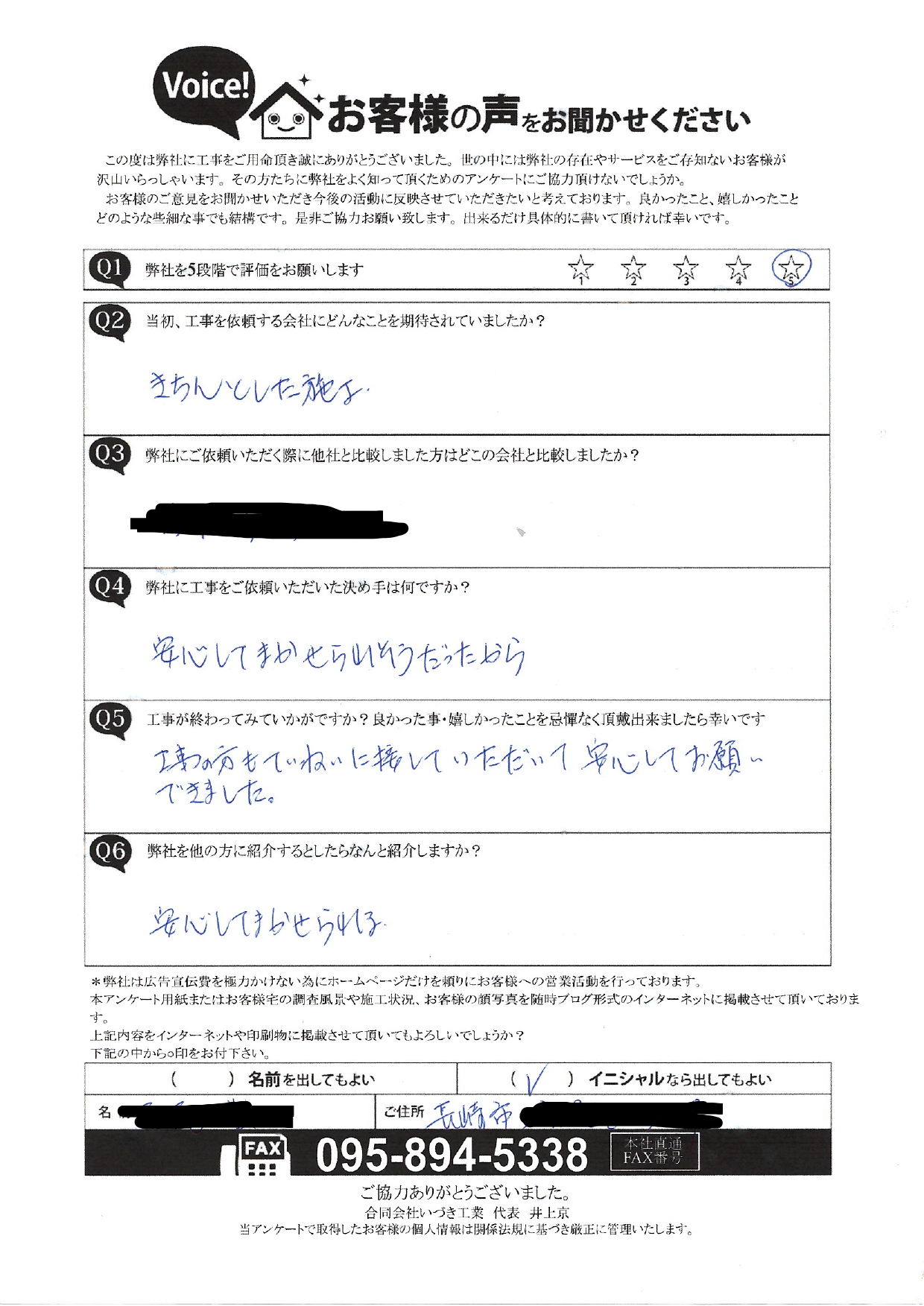 - 工事の方もていねいに接していただいて安心してお願いできました。