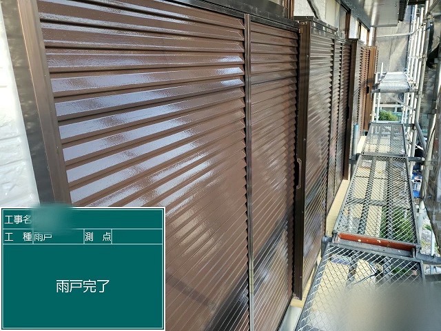 外壁塗装時に「一緒に雨樋や雨戸などを塗って欲しい」との事で外壁塗装とセットで塗らせていただくようにりましたよ!