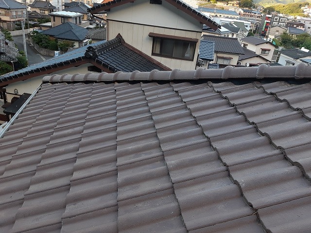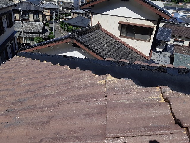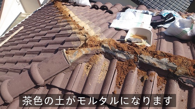 点検してみるとモニエル瓦屋根の棟モルタルが劣化していました。