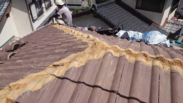 棟瓦がズレる可能性があったため 棟積み直し工事 を行うことになりました!