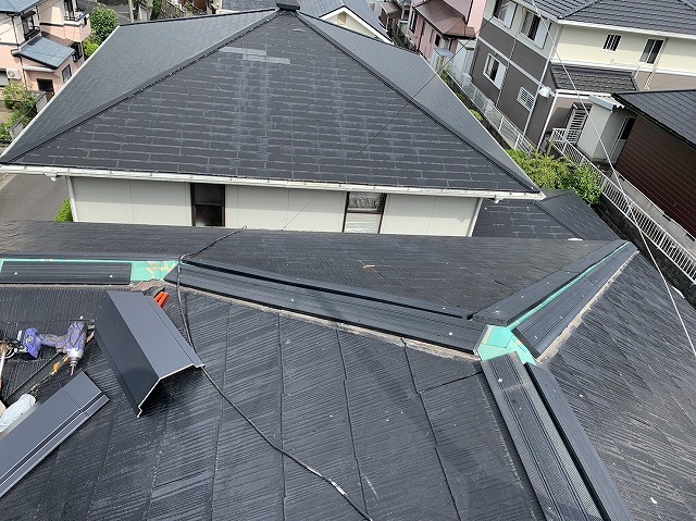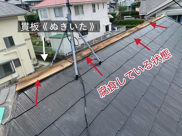 屋根塗装は約5年前に施工されていましたが、棟板金の交換はこれまで一度も行われていないとのことでした。