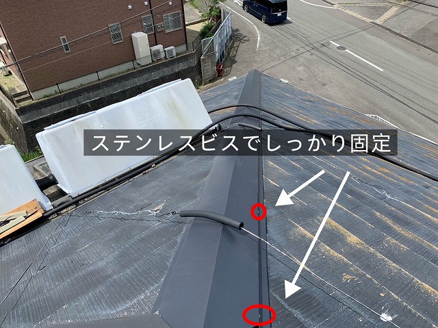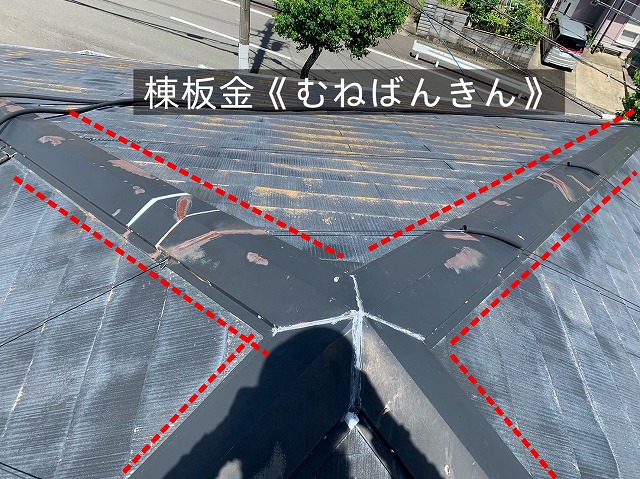 実際に確認すると、棟板金には錆びが見られ、このまま放置すると今後さらに劣化が進む可能性がありました。