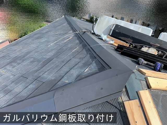 そのため今回は、大屋根・下屋根の棟板金のみを新しいガルバリウム鋼板へ交換する工事をご提案しました!!(^^)